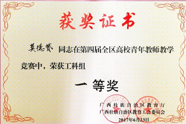 2017-06开云教师在第四届全区高校青年教师教学竞赛中喜获佳绩