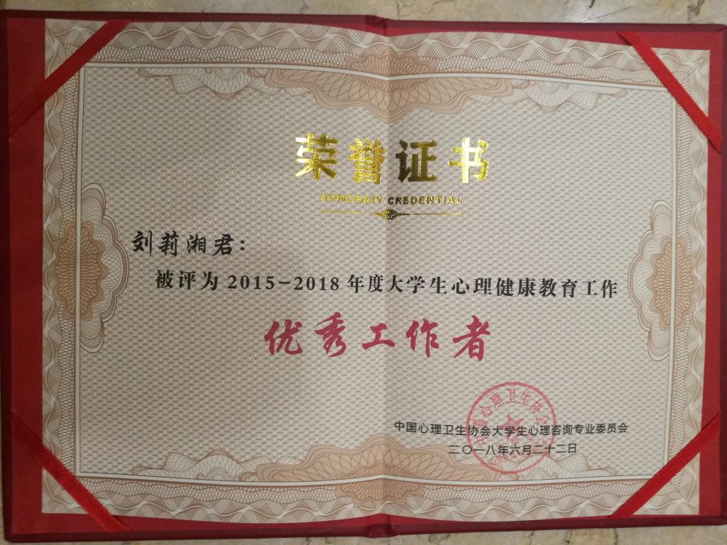 2018-06开云教师获评全国大学生心理健康教育优秀工作者