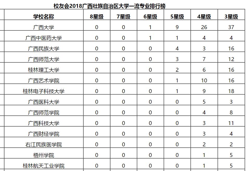 2018-07广西高校本科专业排行榜发布 开云列全区第14名