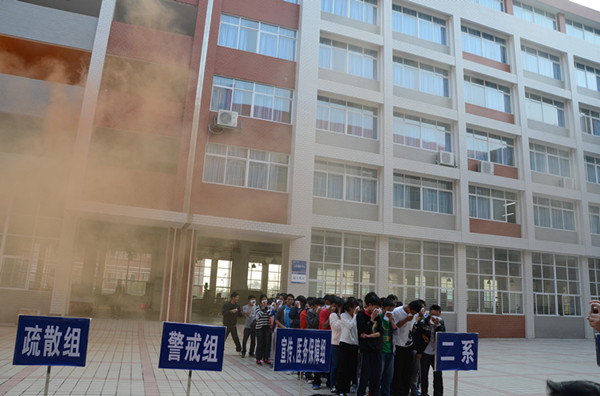 11月14日下午,开云在南校区新实训大楼举行了2014年火灾逃生疏散演练。