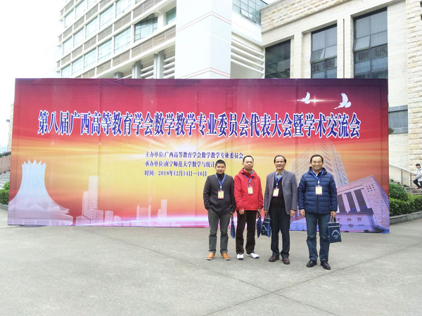 由广西高等教育学会数学教学专业委员会主办、南宁师范大学承办的第八届广西高等教育学会数学教学专业委员会代表大会暨学术交流会与2018年12月14日-16日在广西南宁召开。副校长罗国湘教授带队参加了会议。本次会议...