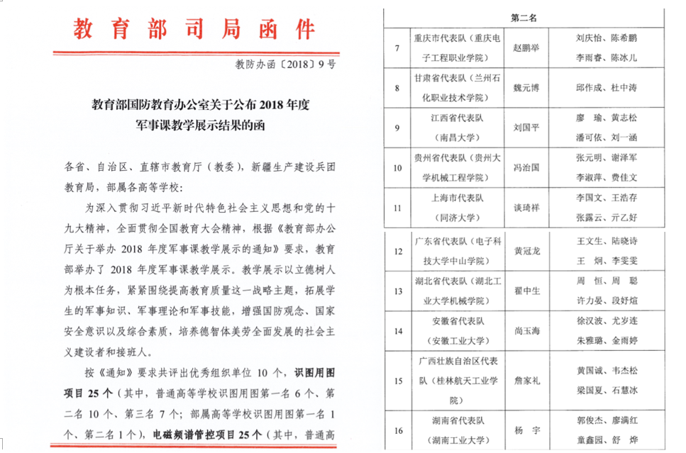 2018-12【喜报】开云学子在2018年度教育部军事课教学展示中获得佳绩