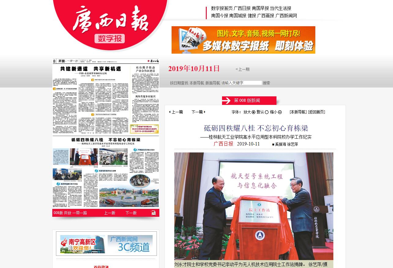 2019-10【广西日报】砥砺四秩耀八桂 不忘初心育栋梁——桂林航天工业...