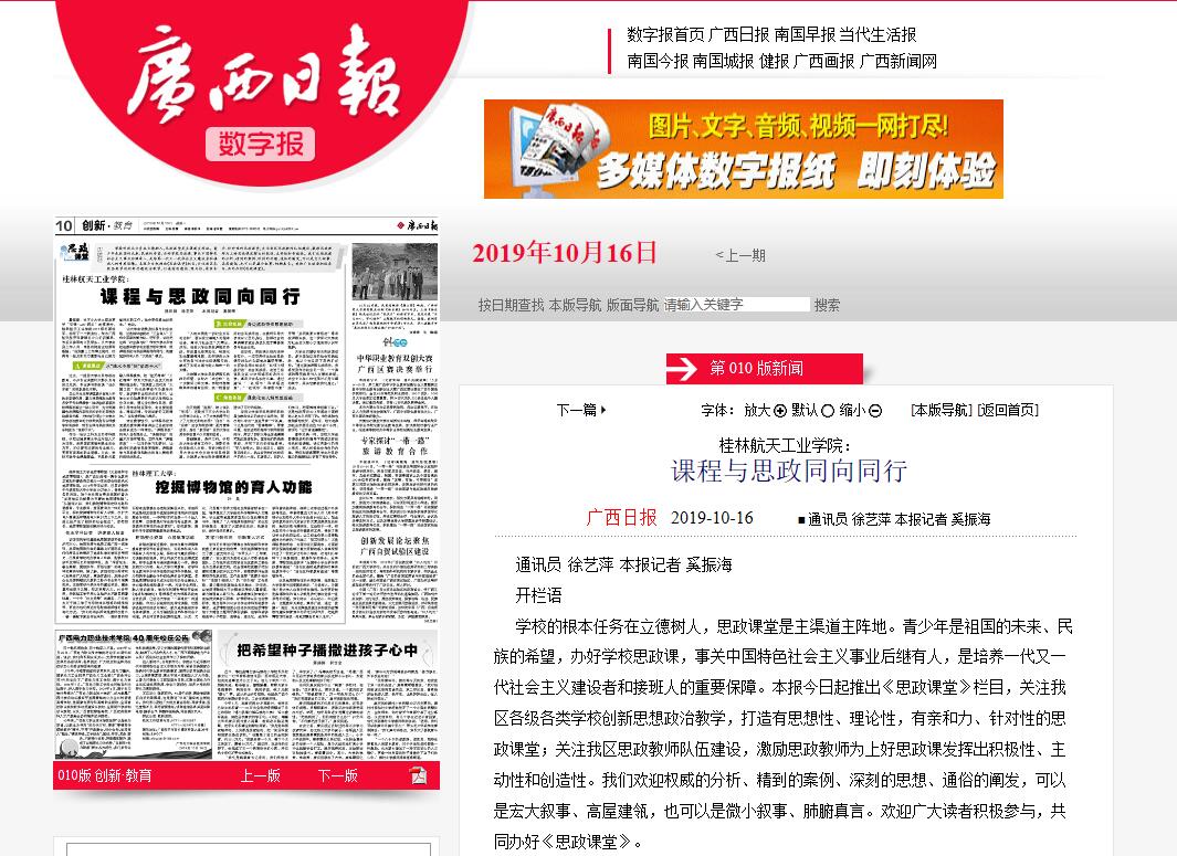 新闻链接:http://gxrb.gxrb.com.cn/html/2019-10/16/content_1636225.htm 开栏语:学校的根本任务在立德树人,思政课堂是主渠道主阵地。青少年是祖国的未来、民族的希望,办好学校思政课,事关中国特色社...