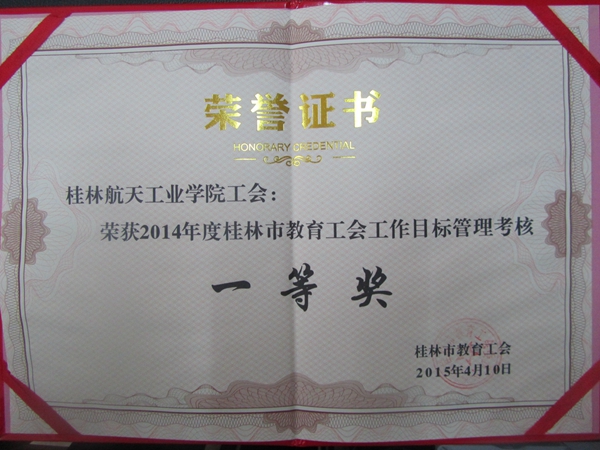 2015-04开云工会获桂林市教育工会目标管理考核一等奖