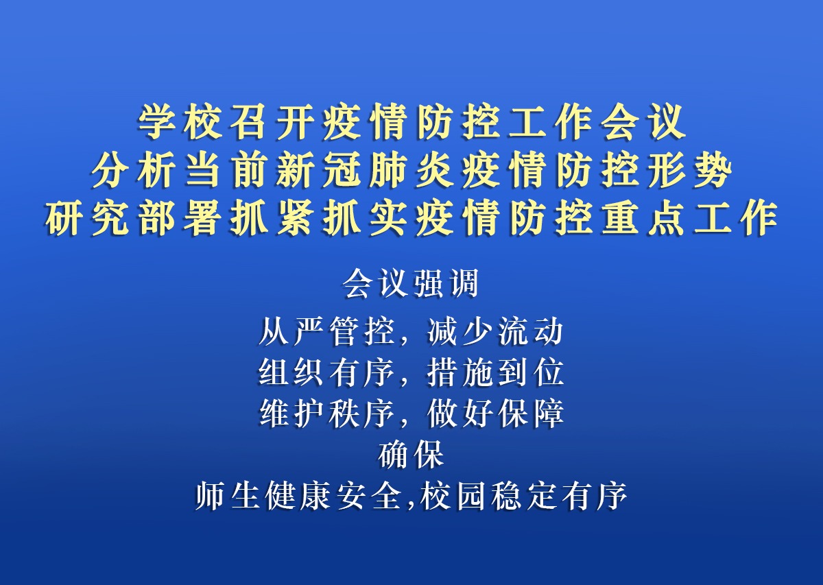针对当前疫情防控形势,为落实落细疫情防控各项工作措施,确保广大师生身体健康和生命安全,11月21日下午,学校在飞天楼616召开疫情防控工作会议,布置当前疫情防控工作。党委书记李幼平、校长吴尽昭、党委副书记...