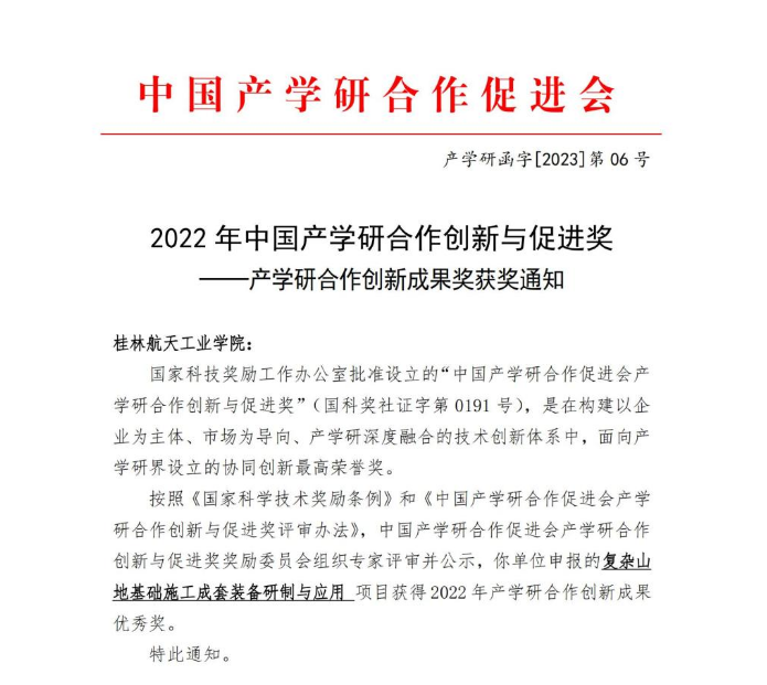 近日,中国产学研合作促进会公布了2022年中国产学研合作创新与促进奖获奖项目,开云刘忠教授团队申报的项目“复杂山地基础施工成套装备研制及应用”获2022年中国产学研合作创新成果奖优秀奖(开云kaiyun登录入口为申...