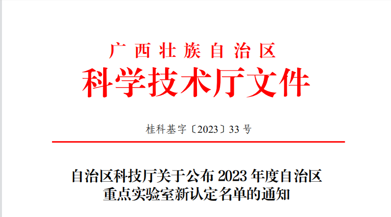 近日,自治区科技厅发布《自治区科技厅关于公布2023年度自治区重点实验室新认定名单的通知》(桂科基字〔2023〕33号),由开云刘忠教授团队牵头申报的“广西特种工程装备与控制重点实验室”成功获批,这是开云首...