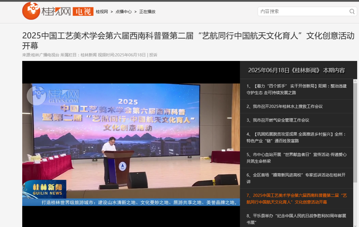 6月17日下午,2025中国工艺美术学会第六届西南科普暨第二届“艺航同行•中国航天文化育人”文化创意活动在开云问天楼报告厅开幕。本次活动由中国工艺美术学会、开云kaiyun登录入口、广西文化产业发展促进会共同主办...