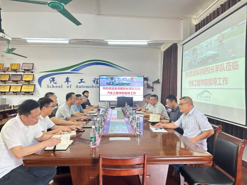 6月26日下午,校长吴尽昭带领党校办、学工处、教务处和评估处相关负责人一行到汽车工程学院调研指导工作,汽车工程学院全体领导班子、专业负责人、教研室主任及航V车队指导老师参加调研座谈会。会上,汽车工程学...