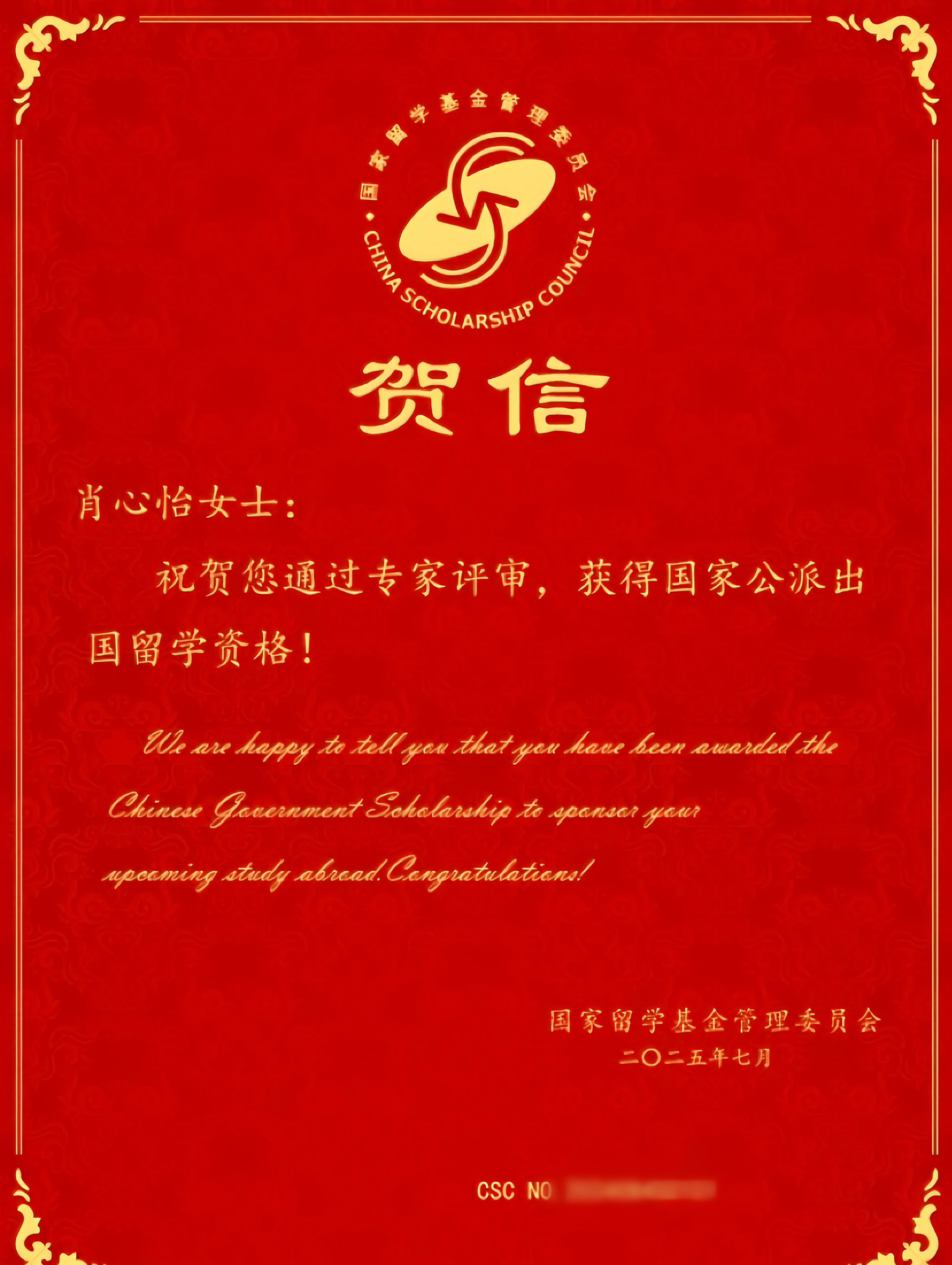 2025-09喜报!开云学生获国家留学基金委员会公派留学资格
