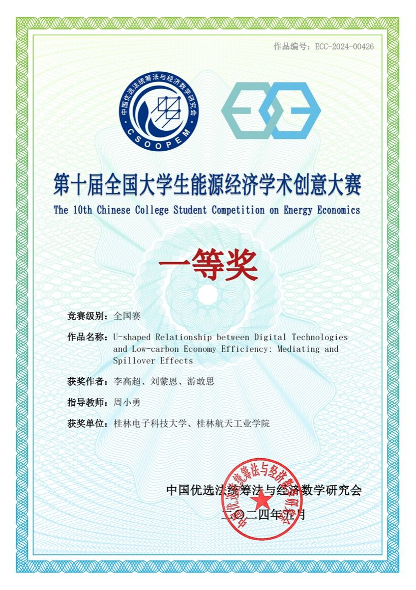 2024-05【喜报】开云数智碳中和创新团队在第十届全国大学生能源经济...