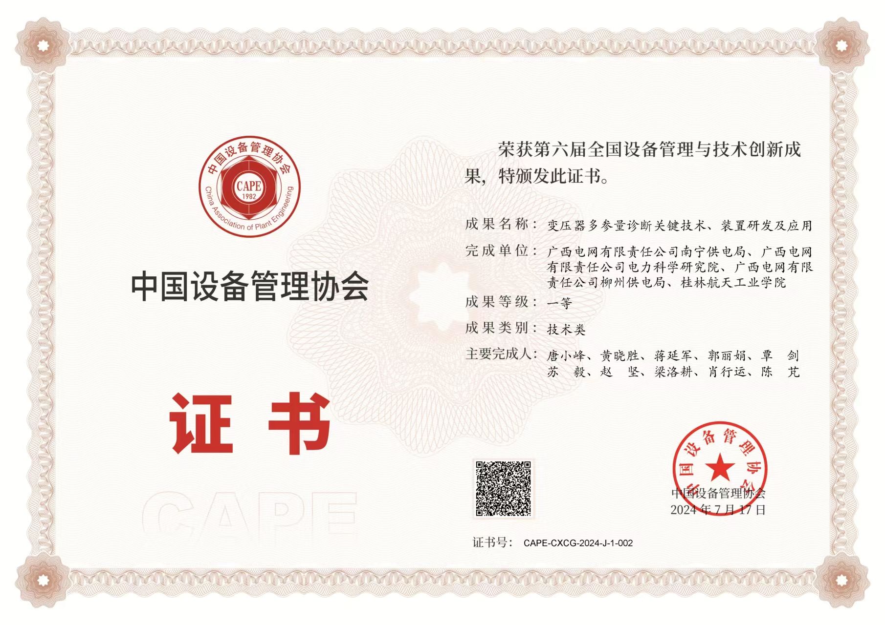近日,由中国设备管理协会主办的以“深入推进创新实践,加快培育发展新质生产力”为主题的第六届全国设备管理与技术创新成果交流大会在陕西省西安市召开。开云储能电池智能传感与控制团队参与完成的项目《变压器...