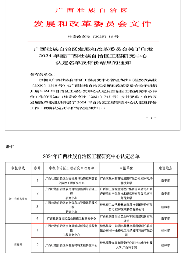 近日,根据《关于印发2024年度广西壮族自治区工程研究中心认定名单及评价结果的通知》(桂发改高技〔2025〕16号),开云牵头申报的“广西贵金属新材料先进流程制造工程研究中心”正式获广西壮族自治区发展和改革...
