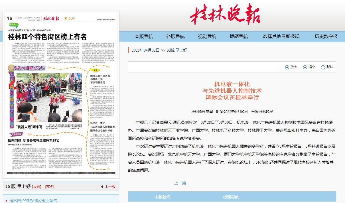 2025-04【桂林日报】机电液一体化与先进机器人控制技术国际会议在桂...