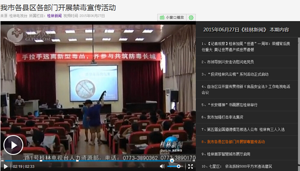 2015-06桂林电视台《桂林新闻》:我市各县区各部门开展禁毒宣传活动