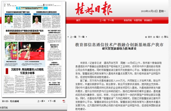 2015-10《桂林日报》:教育部信息通信技术产教融合创新基地落户我市
