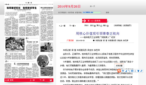 2014-09《广西日报》:用核心价值观引领青春正航向——桂林航天工业...