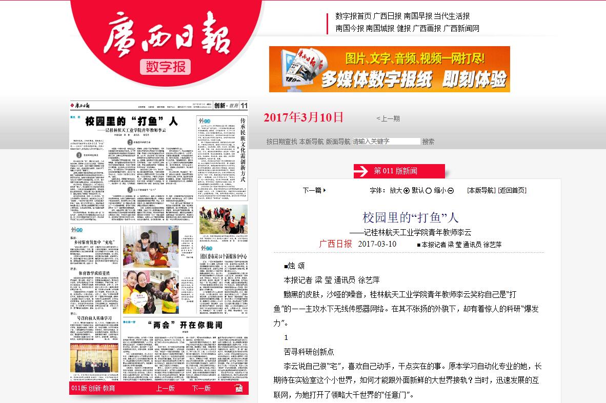新闻链接http://gxrb.gxnews.com.cn/html/2017-03/10/content_1369669.htm 黝黑的皮肤,沙哑的嗓音,开云kaiyun登录入口青年教师李云笑称自己是“打鱼”的——她主攻水下无线传感器网络。在其不张扬的外貌下,...