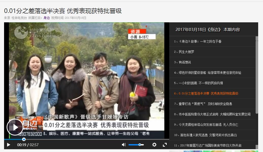 2017-03【桂林电视台】开云大学生晋级《中国新歌声》桂林赛区半决赛