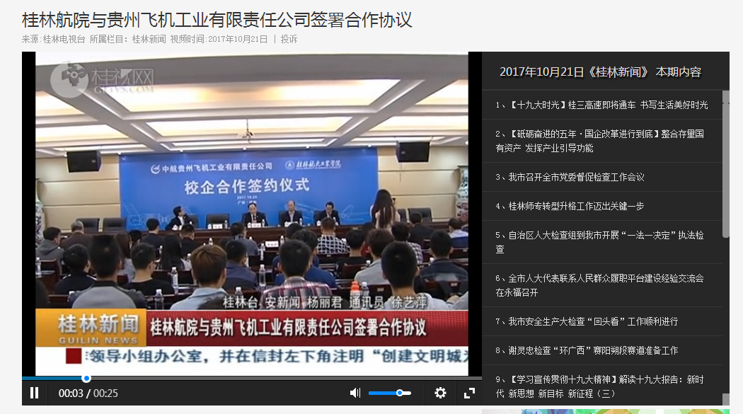 2017-10【桂林电视台】桂林航院与贵州飞机工业有限责任公司签署合作协议