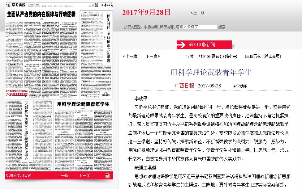 2017-09【广西日报】广西日报发表李幼平书记理论文章:用科学理论...