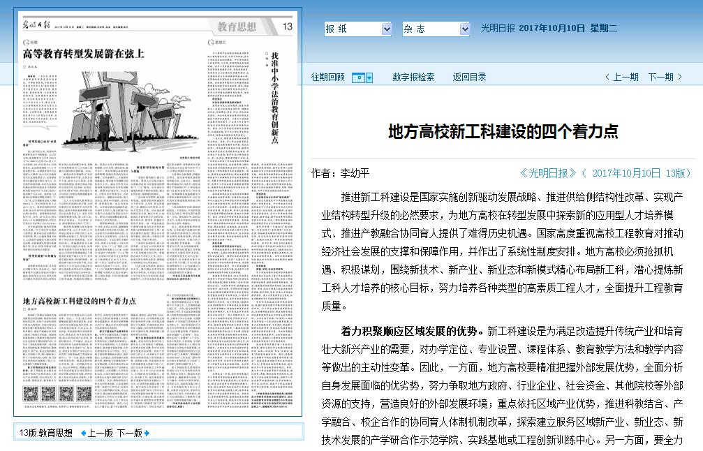 2017-10【光明日报】光明日报发表李幼平书记理论文章:地方高校新工...