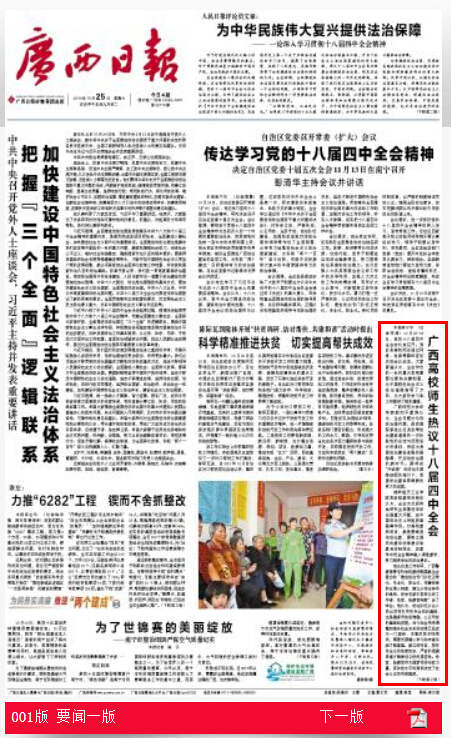 2014-11《广西日报》、人民网:广西高校师生热议十八届四中全会