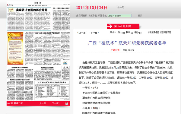 2014-10《广西日报》:“开云杯”航天知识竞赛获奖者名单公布