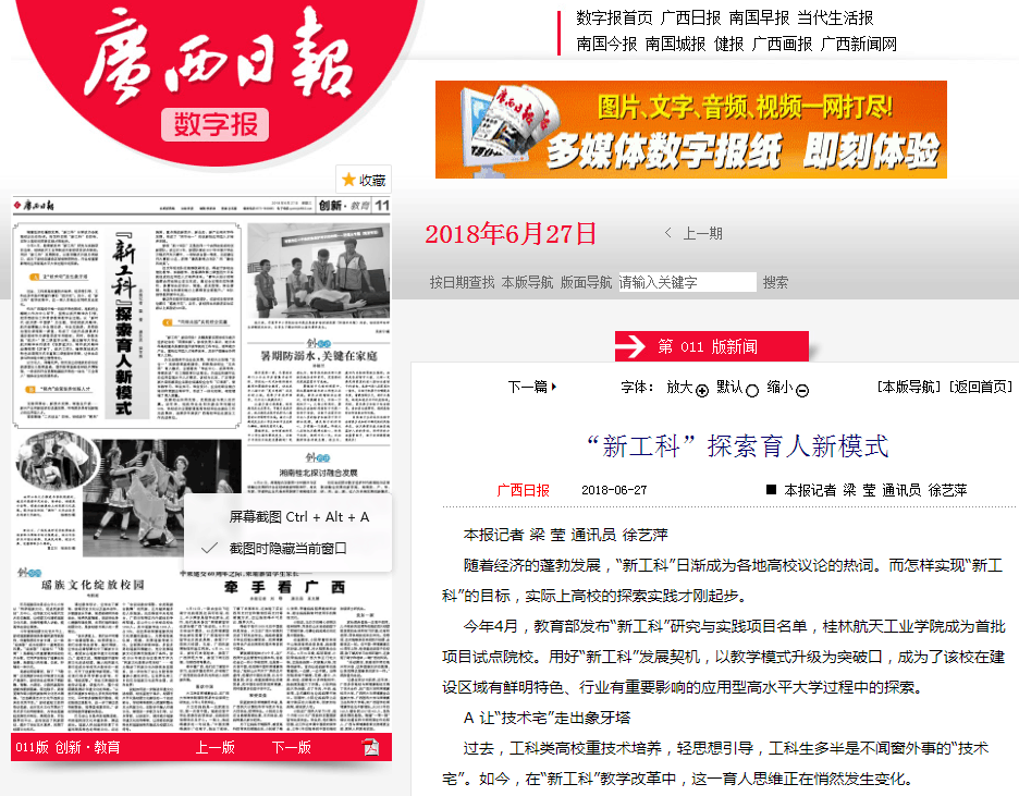 2018-07【广西日报】创新教育版头条:“新工科”探索育人新模式