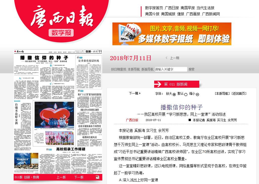 2018-07【广西日报】播撒信仰的种子——我区高校开展“学习新思想,...