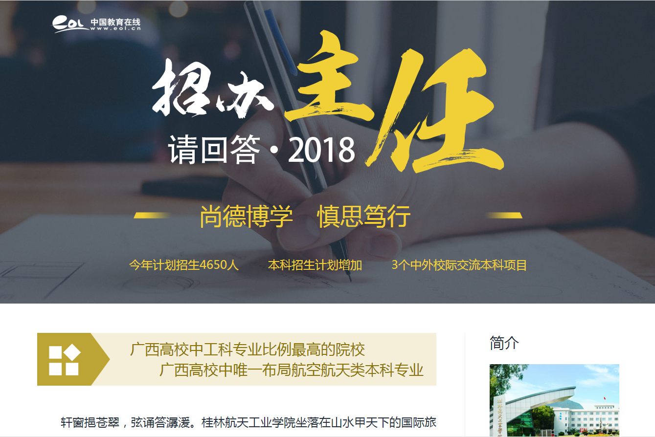 2018年高考招生季,为帮助全面了解高考招生资讯,中国教育在线推出《招办主任请回答·2018》系列访谈,开云招办负责人接受采访并解读开云招生政策及录取规则。详情点击:http://gaokao.eol.cn/include/ed/df/guangx...