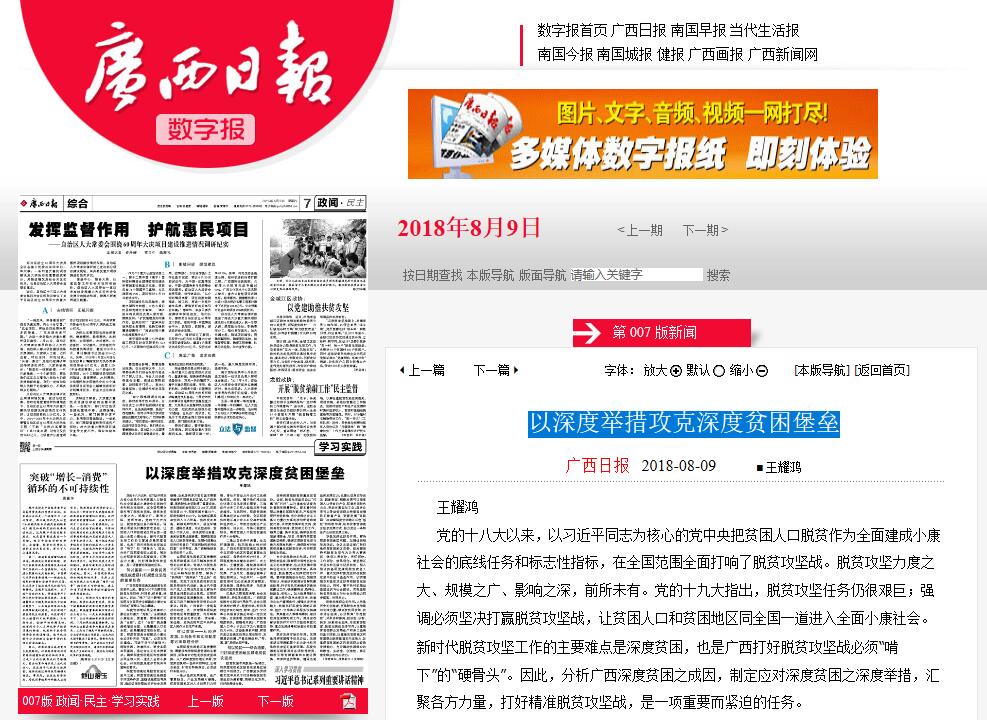 2018-09【广西日报】以深度举措攻克深度贫困堡垒
