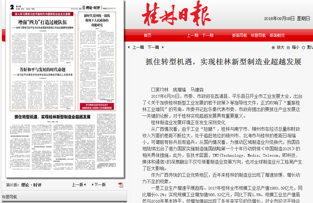 2018-09【桂林日报】抓住转型机遇,实现桂林新型制造业超越发展