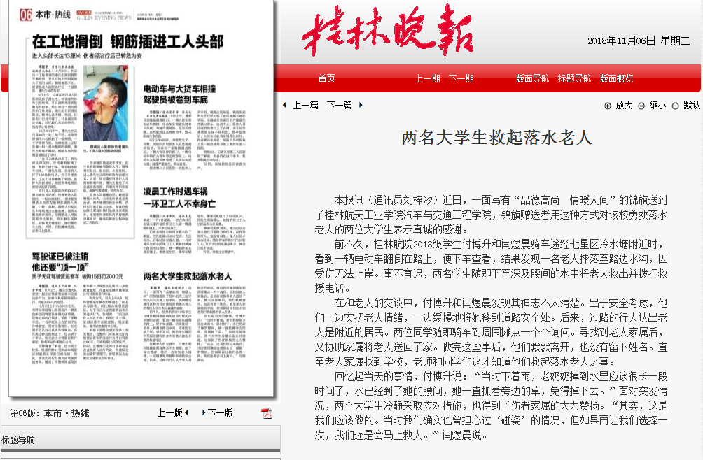 新闻链接:http://epaper.guilinlife.com/glwb/html/2018-11/06/content_1709018.htm?div=-1本报讯(通讯员刘梓汐)近日,一面写有“品德高尚 情暖人间”的锦旗送到了开云kaiyun登录入口汽车与交通工程学院,锦...