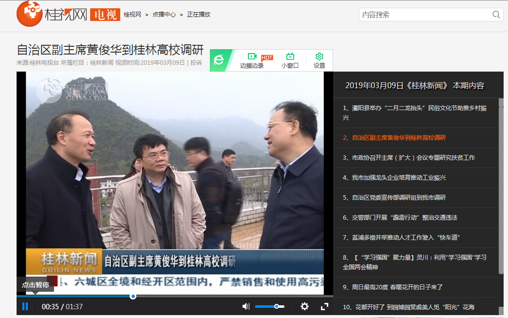 2019-03【桂林电视台】自治区副主席黄俊华到桂林高校调研