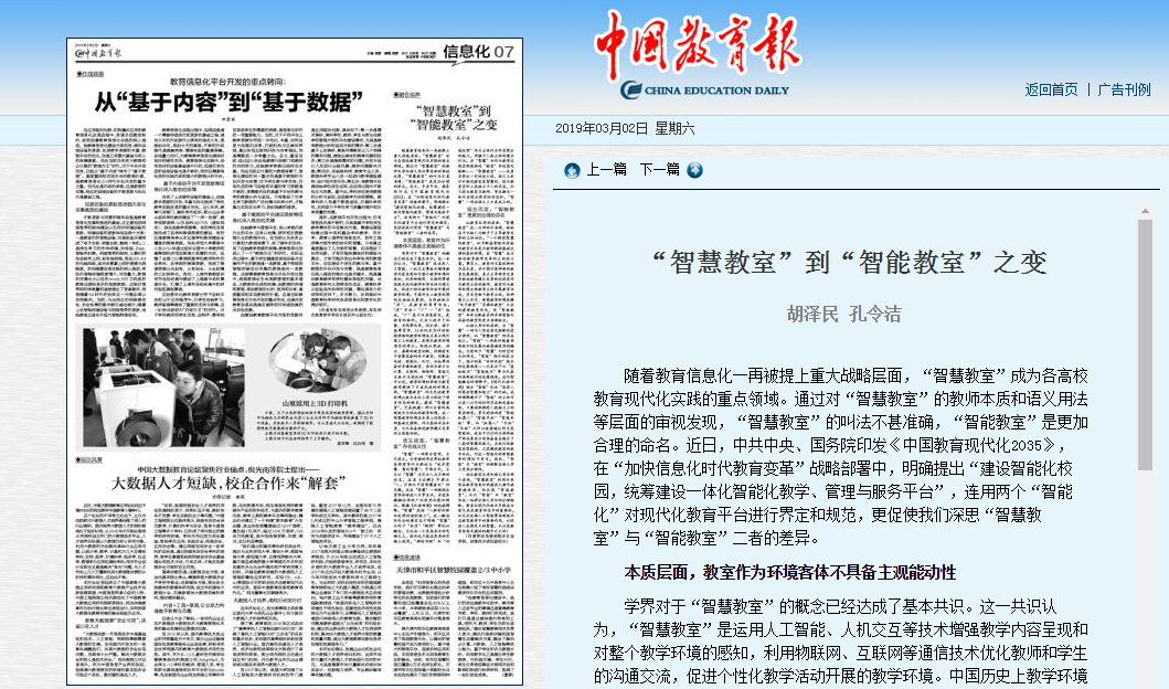 2019-03【中国教育报】“智慧教室”到“智能教室”之变