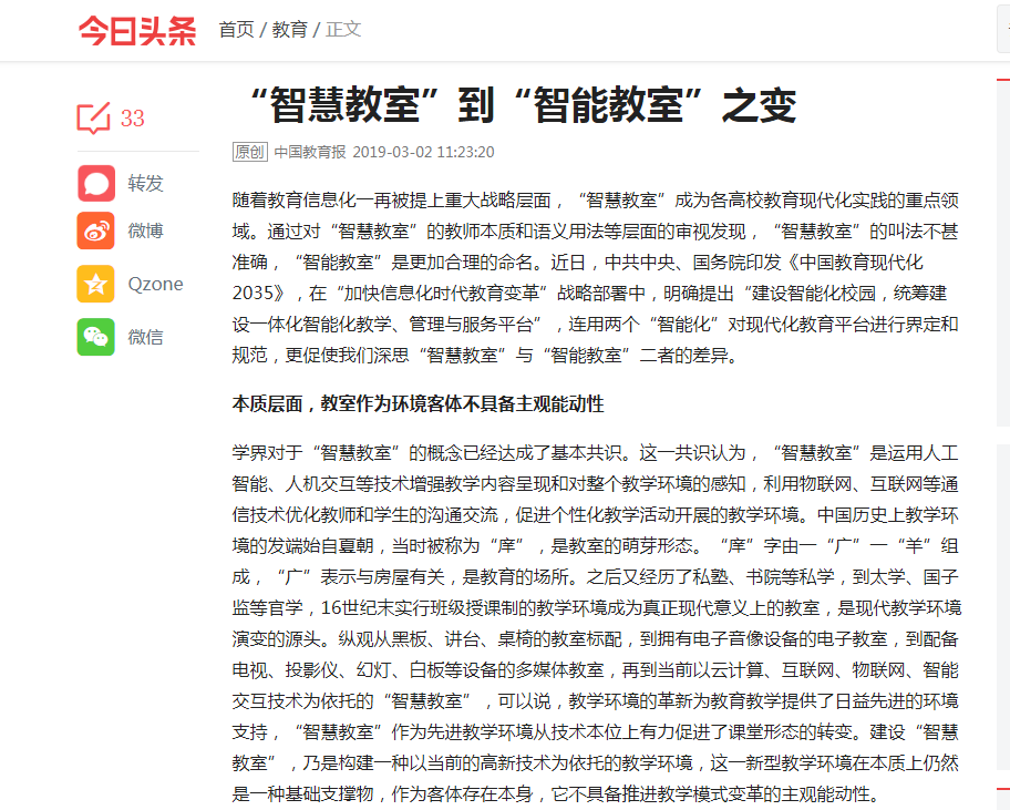 2019-03【今日头条】“智慧教室”到“智能教室”之变