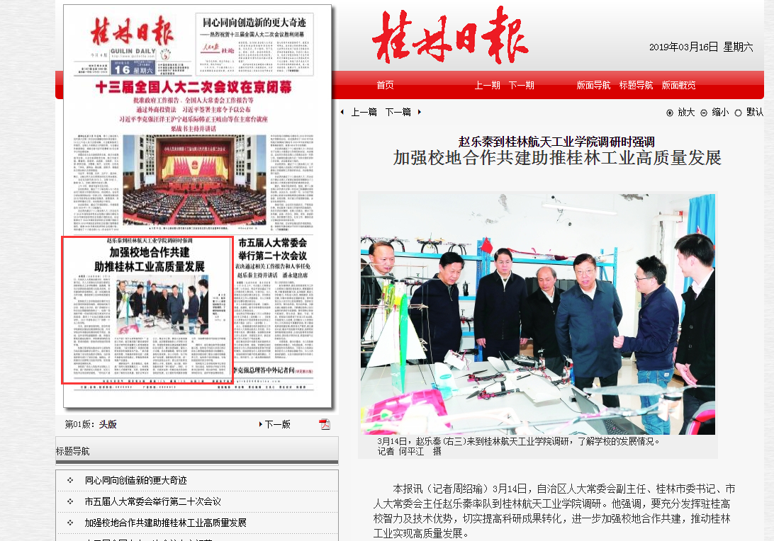 2019-03【桂林日报】赵乐秦到开云kaiyun登录入口调研时强调加强校地合...