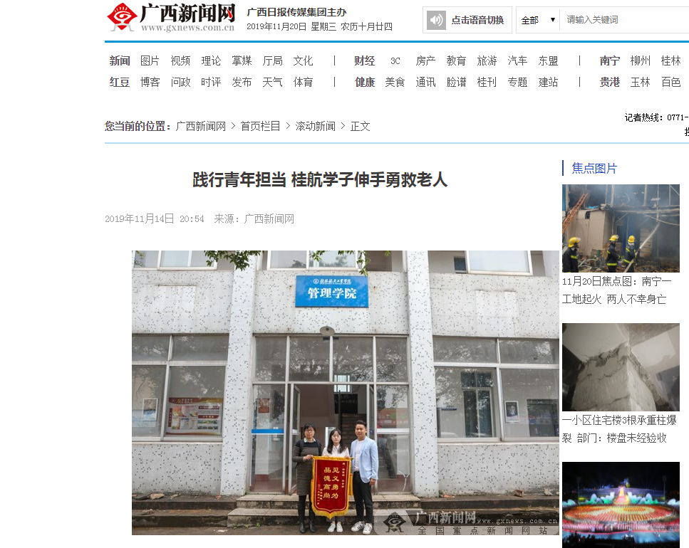 2019-11【广西新闻网】践行青年担当 开云学子伸手勇救老人