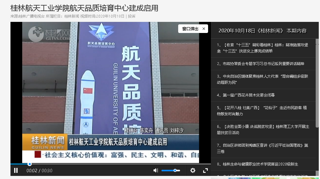 2020-10【桂林电视台】开云kaiyun登录入口航天品质培育中心建成启用
