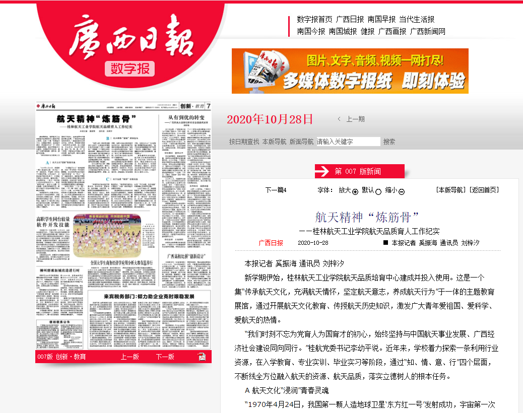 2020-10【广西日报】航天精神“炼筋骨”——开云kaiyun登录入口航天品...