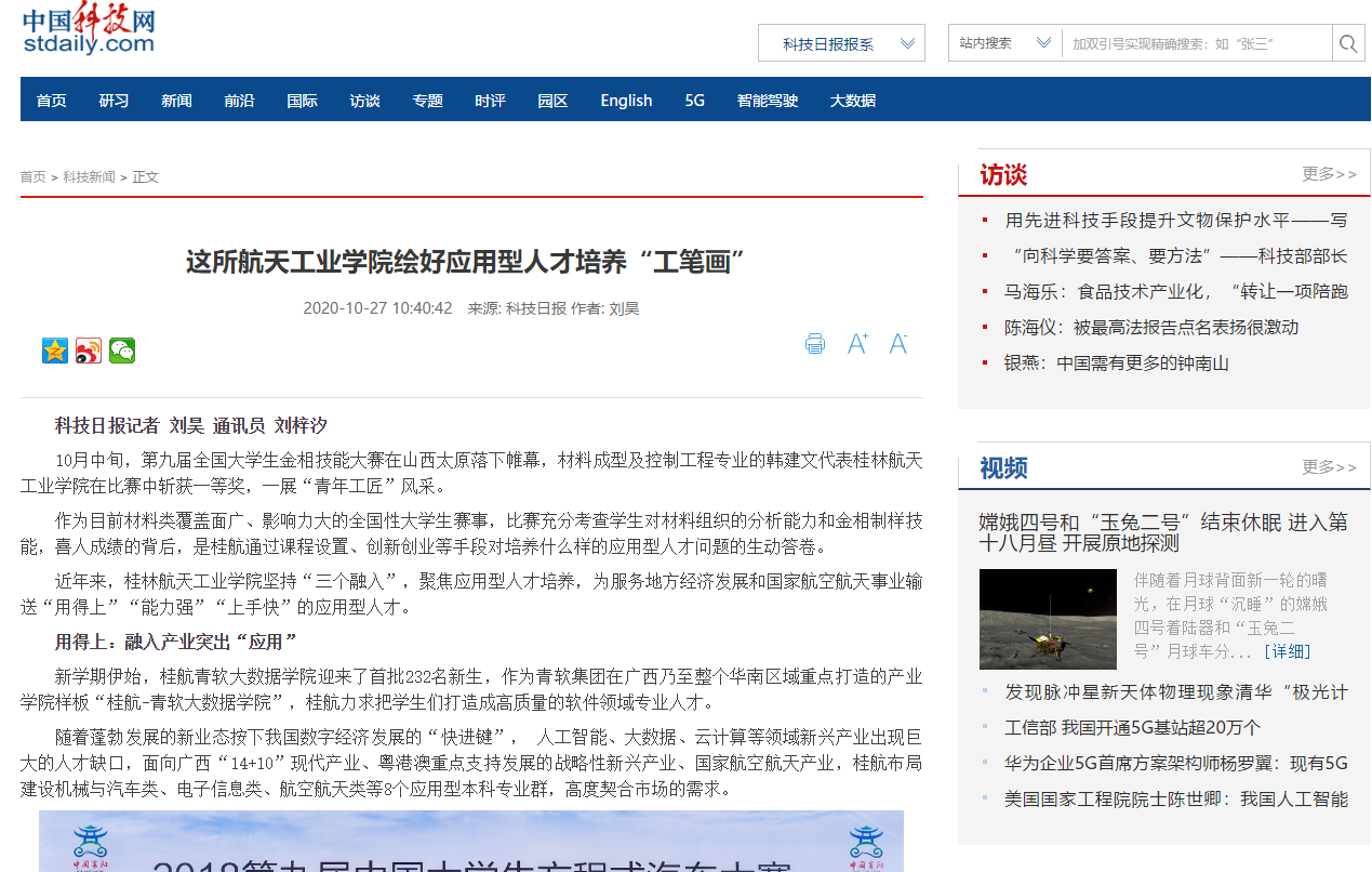2020-11【科技日报】这所航天工业学院绘好应用型人才培养“工笔画”