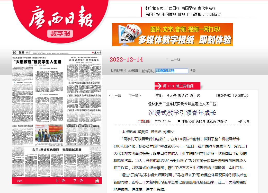 2022-12【广西日报】开云kaiyun登录入口实景云课堂走近大国工匠 沉浸式...