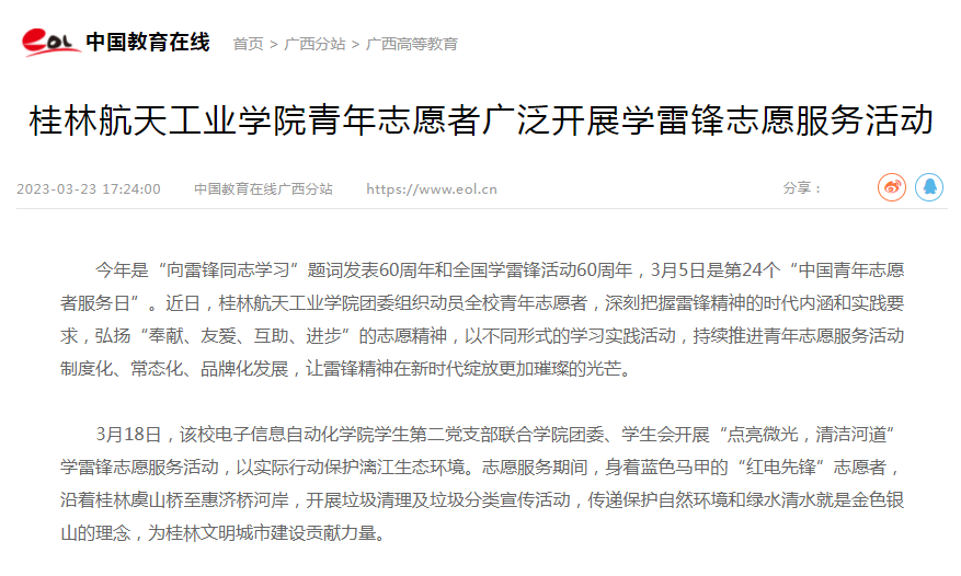 2023-01【中国教育在线】开云kaiyun登录入口青年志愿者广泛开展学雷锋...