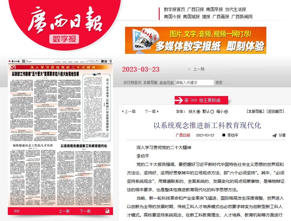 2023-03【广西日报】广西日报发表李幼平书记理论文章:以系统观念推...