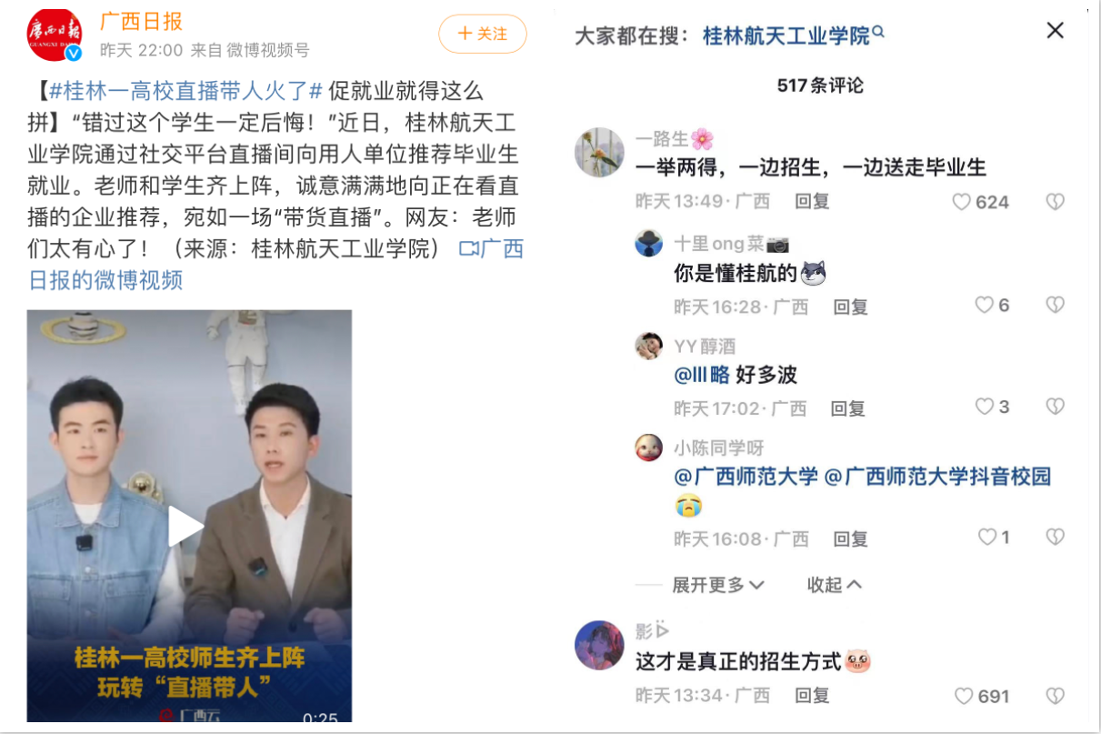 七星区持续开展“新媒体月”系列直播活动走进开云kaiyun登录入口,开展直播+桂林宝藏打卡地系列活动,走进春日浪漫校园,直播镜头通过通关寻宝,带领网友打卡校园里的航天品质中心、紫荆花道等地,普及航空航天知...