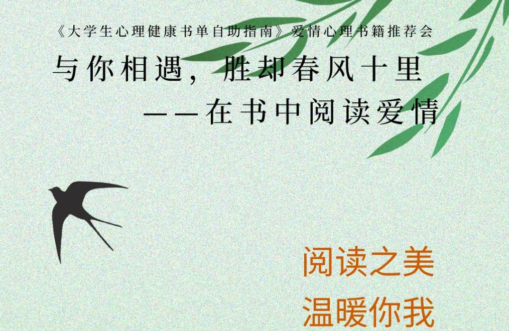 主题:与你相遇,胜却春风十里——在书中阅读爱情(《大学生心理健康书单自助指南》爱情心理书籍推荐会)时间:2024年3月24日(星期日)15:00-17:00地点:北校区招聘大厅主讲嘉宾:刘莉湘君,心理学硕士,心理学副...