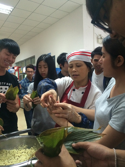 6月8日晚,国际教育交流中心组织留学生在南校区食堂一楼开展了一场“迎端午,包粽子”体验活动。