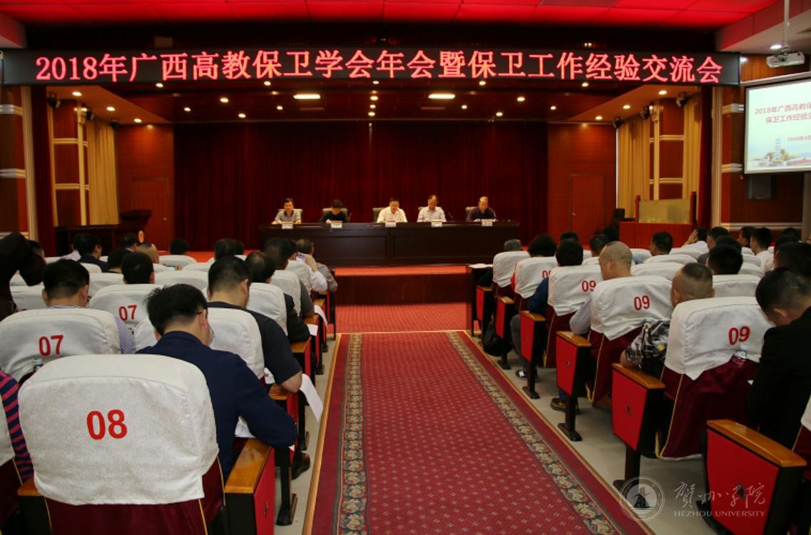 4月12-13日,2018年广西高教保卫学会年会暨保卫工作经验交流会在贺州学院召开。自治区教育厅安稳处副处长熊忠良,自治区公安厅国保总队支队长陈海军,自治区国家安全厅副处长黎明,广西高教保卫学会副理事长、秘...